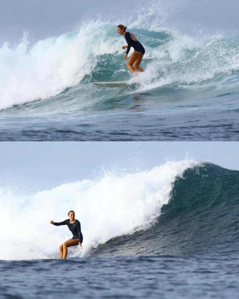 Noserider began with a simple idea: to design surfwear that performs as beautifully as it looks. Emma started surfing later in life and quickly realized that the right gear can make or break your experience in the waves. Frustrated by surfwear that couldn’t keep up, she sketched her first designs for a suit that offered support, style, and security.