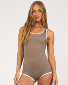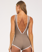 The Retro Surf Suit is a customer favorite for its flattering fit, thoughtful construction, and classic surf silhouette. With boy-leg bottoms and a plunging back, it’s designed to stay on and stand out, whether you’re paddling out or cruising through your day.