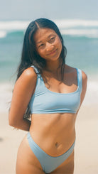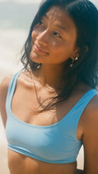 The Noserider Surf Bikini Top is designed to stay put while you move freely — in the water or on the sand. With a secure bralette shape and no need for adjustments, it offers a streamlined look and dependable comfort. The eco-friendly fabric is soft yet strong, double-lined to handle everything from early paddle-outs to lazy low-tide walks.