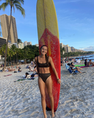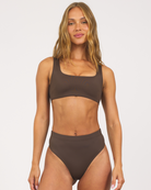 The Noserider Surf Bikini Top in Espresso blends rich, grounded color with a silhouette that works as hard as you do. With a supportive bralette-style fit and wide straps, this top is trusted by surfers and active mamas alike for its secure feel and timeless shape. Pair it with the matching Noserider Surf Bikini Bottom for a clean, confident look that transitions effortlessly from surf to shore.